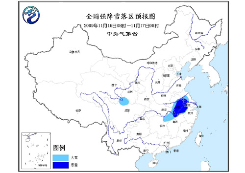 中新網11月16日電 中央氣象臺16日06時繼續(xù)發(fā)布暴雪橙色警報:受冷暖空氣的共同影響,預計今天白天到夜間,川西高原北部、湖北東部、湖南東北部、安徽中部和南部、江蘇中南部偏西地區(qū)以及江西北部等地有大雪,其中,安徽中南部、江蘇中部偏西的部分地區(qū)以及湖北東南部和江西北部的局部地區(qū)有暴雪,降水量一般有10~15毫米,局地可達20毫米以上。另外貴州中部偏西的局部地區(qū)有凍雨。