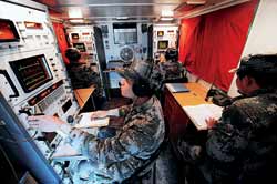由濟(jì)南軍區(qū)組織的“鐵拳—2009·確山”實(shí)兵實(shí)彈檢驗(yàn)性演習(xí)11月中旬拉開帷幕,演習(xí)全程設(shè)置了復(fù)雜電磁環(huán)境,這是我軍首次在復(fù)雜電磁環(huán)境下對(duì)整建制機(jī)械化步兵師綜合作戰(zhàn)能力進(jìn)行檢驗(yàn),探索我軍信息化條件下的訓(xùn)法、戰(zhàn)法。在遠(yuǎn)程機(jī)動(dòng)過程中,記者深深感受到如影隨形、變幻莫測的電磁干擾。