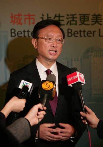 楊潔篪說(shuō),2010年世博會(huì)不僅是上海的世博會(huì),中國(guó)的世博會(huì),更是世界的世博會(huì),是國(guó)際經(jīng)濟(jì)、社會(huì)與人文領(lǐng)域的一大盛會(huì),是世界各國(guó)人民相互交流、謀求共同發(fā)展繁榮的歷史機(jī)遇,將成為世界經(jīng)濟(jì)和科技成果的展示平臺(tái)、文化藝術(shù)的交流平臺(tái)、國(guó)際交往的友誼平臺(tái)。中國(guó)政府高度重視上海世博會(huì)籌備工作,將舉全國(guó)之力,集世界智慧,為世界奉獻(xiàn)一屆精彩、成功、難忘的盛會(huì),并與世界各國(guó)一道共享世博會(huì)帶來(lái)的發(fā)展機(jī)遇和成果。