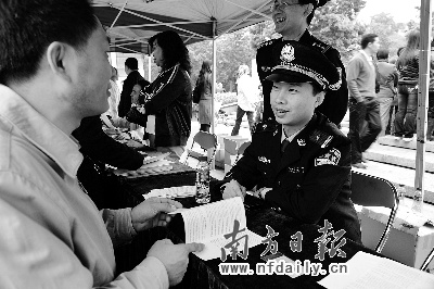 前來(lái)現(xiàn)場(chǎng)咨詢的群眾絡(luò)繹不絕。伍女士與丈夫帶著6歲的小孩一家子圍著現(xiàn)場(chǎng)的民警仔細(xì)地問(wèn)。伍女士是江門臺(tái)山人,她1993年就來(lái)到廣州,在一家私人企業(yè)做工。工作了10多年,為了小孩讀書,勒緊了褲帶在越秀區(qū)文明路買了一套60多平方米的二手房,感覺(jué)自己多少有點(diǎn)像廣州人了。廣東即將推行居住證的消息讓她期待滿懷:“等了很久啊,現(xiàn)在看到了希望,有了戶口,才能真正讓自己在這里扎根下來(lái)啊!”