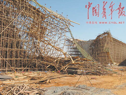 1月4日,記者在工地現(xiàn)場看到,垮塌的支架觸目驚心,無數(shù)的鋼筋斷裂交錯,長長的引橋被撕裂成一個很大的口。