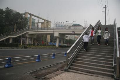 “天橋太陡,輪椅推不動(dòng),只有繞一個(gè)路口再過馬路!痹诙h(huán)路郭家橋西街路口,市民張女士對(duì)眼前新建的天橋有些無(wú)奈。她說(shuō),推著坐輪椅的父親過街時(shí),每次遇到天橋都要繞道。
