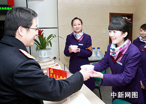 有旅客小心地把中國結放進行李箱里,也有旅客把布老虎系在背包上,氣氛一下熱烈起來,大家吃著熱氣騰騰的湯圓,你一言他一語的和工作人員拉起家常來:“你們也很辛苦,大過年的,還要給我們這些旅客服務,不能和家人團聚。”“哪里話,說真的,看到你們平安高興返家,我們比自己和家人團聚還高興!