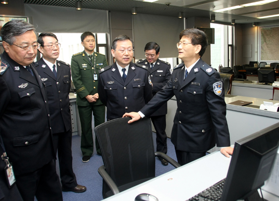 孟建柱通過(guò)視頻指揮系統(tǒng),先后聽(tīng)取了北京、上海、新疆、廣東、遼寧、云南、西藏等地公安機(jī)關(guān)值班廳局長(zhǎng)的匯報(bào),了解了節(jié)日期間各地安保工作情況。