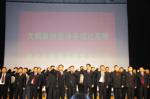 在武隆縣委常委楊國權、吳成武、李成群等上臺之后,其他縣領導、部門領導也相繼走上前臺,舉起右拳立下誓言。因為過于緊張,平常舉止大方的“一把手”們還鬧出不少笑話。有的變得結巴,有的忘了事先想好的誓詞,有的忘了舉起右手,還有人忘了報自己姓名。但不管過程如何,所有宣誓人最后一句話都離不開“如果完不成任務,我主動辭職”。
