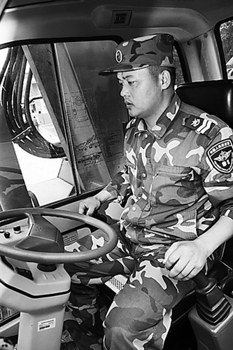 說(shuō)得容易做來(lái)難。王益春學(xué)習(xí)挖掘機(jī)駕駛不久,在一次沼澤地作業(yè)中,駕駛的74式Ⅱ型輪式挖掘機(jī)兩個(gè)前輪下陷泥潭,急得滿(mǎn)頭大汗!皰鞊、加油、撐臂……”班長(zhǎng)鄧舜之將“鐵爪”往前一撐,前推后拉不足2分鐘,挖掘機(jī)重顯威風(fēng)!捌綍r(shí)勤學(xué)苦練,戰(zhàn)時(shí)才能適應(yīng)復(fù)雜環(huán)境!蓖跻娲喊迪聸Q心,要像班長(zhǎng)一樣?jì)故觳僮鳌拌F爪”。平時(shí)作業(yè)時(shí),爛泥潭、沼澤地等臟活難活,王益春總是積極主動(dòng)搶著干,休息間隙就虛心請(qǐng)教苦練。晚上,別人看電視,他卻對(duì)照教材,悉心研究挖掘機(jī)構(gòu)造原理,把能拆開(kāi)的零部件拆開(kāi)看個(gè)究竟。他告訴記者,要使平底坑壁直底平,關(guān)鍵就是上下左右兩手的配合操作,“鐵爪”長(zhǎng)度、開(kāi)口大小、鐵臂長(zhǎng)短,牢記這些數(shù)據(jù)不但可當(dāng)尺子用,還能提高精準(zhǔn)度。為此,他一有空就把小石頭吊在樹(shù)枝上,從不同角度用“鐵爪”去觸摸小石頭,還在操縱桿底座上刻上刻度,根據(jù)土質(zhì)的松軟程度,感悟拉操縱桿的力度。