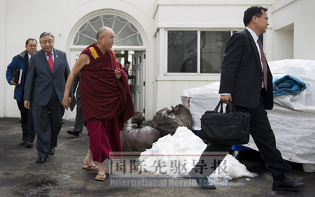 2月18日,會(huì)見結(jié)束后,達(dá)賴興高采烈地告訴守候在白宮的美國(guó)媒體:“奧巴馬總統(tǒng)非常支持我!钡D(zhuǎn)身后,自恃為“貴賓”的達(dá)賴卻被“主人”從白宮后門請(qǐng)出。
