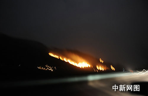 26日晚,中新網(wǎng)記者夜行貴州六盤水到安順市關(guān)嶺布依族苗族自治縣的路上,在不到三小時(shí)的時(shí)間里,連續(xù)看到5起正在燃燒的山火。其中,在青黃高速穿越的六枝特區(qū)安樂塘附近層層疊疊的大山中間,一條火龍?jiān)趲鬃降陌胙H蔓延肆虐,遠(yuǎn)遠(yuǎn)望去,猛烈的火勢(shì)映紅天際。而其他幾處山火亦是從山腰向上蔓延,有愈發(fā)猛烈之勢(shì)?吹缴交鸷,記者隨即撥打火警119,并從接線員處了解到,或因氣溫升高的原因,當(dāng)晚接到的森林火警數(shù)量較之前幾日陡增,消防部門正會(huì)同林業(yè)及相關(guān)單位協(xié)調(diào)調(diào)集人力滅火,但形勢(shì)仍不容樂觀。
