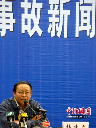 中煤一建63組項(xiàng)目部副總經(jīng)理張建立在3·28王家?guī)X煤礦透水事故四次新聞發(fā)布會發(fā)言并回答記者。