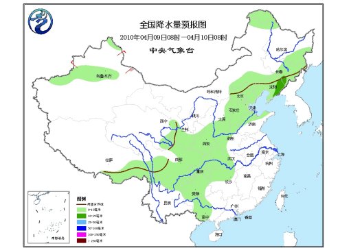 9日08時(shí)至10日08時(shí),新疆阿勒泰地區(qū)及沿天山一帶、甘肅甘南地區(qū)、青海東部、西藏東部、川西高原中部、內(nèi)蒙古東部偏南地區(qū)及東北部、黑龍江西北部和東南部、河北西北部、遼寧西北部、吉林大部等地有小到中雪(雨)或雨夾雪;川西高原南部、甘肅東南部、陜西中南部、華北大部、遼寧大部、河南西部、湖北中西部、西南地區(qū)東部、湖南北部、廣西中西部等地有小到中雨或陣雨。新疆北部、內(nèi)蒙古東部、東北地區(qū)中北部等地有4~6級風(fēng),新疆山口地區(qū)風(fēng)力有7~9級風(fēng);新疆南疆盆地、內(nèi)蒙古中西部等地的部分地區(qū)有揚(yáng)沙或浮塵。渤海將有5~6級東北風(fēng);黃海大部海域、東海北部海域?qū)⒂?~5級偏南風(fēng);東海南部海域、臺灣海峽、臺灣以東洋面和以南海域、南海東北部海域?qū)⒂?~6級東北風(fēng)。