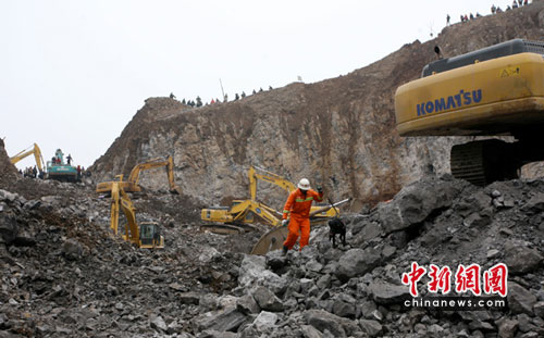 中新網(wǎng)峨眉樂都4月10日電(劉忠俊)10日14:55分,按照四川省公安消防總隊(duì)部署,成都市消防支隊(duì)政委馬昆帶著剛從沈陽培訓(xùn)結(jié)束的兩只搜救犬以及訓(xùn)導(dǎo)員等趕到峨眉山市樂都鎮(zhèn)順江采石場山體垮滑現(xiàn)場增援搜救工作。經(jīng)過2只搜救犬現(xiàn)場三次搜尋,在垮塌現(xiàn)場找到一臺失蹤汽車。