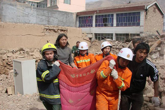 武警青海玉樹州支隊(duì)副政治委員閻軍富表示,玉樹州州府結(jié)古鎮(zhèn)附近的西航村(音)已經(jīng)夷為平地,99%民房全部倒塌。還有當(dāng)?shù)厝吮硎,這樣的村莊不止一處。