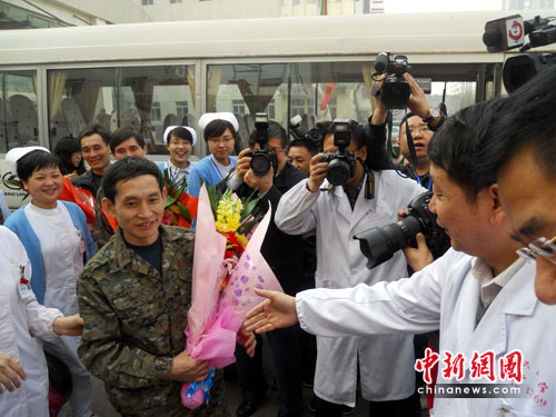 中新社太原4月16日電 題: 53名王家?guī)X獲救礦工出院 與山西醫(yī)護人員惜別