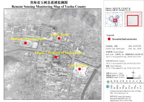 截至目前,通過國際減災(zāi)憲章(Charter)機制,已獲取災(zāi)前影像數(shù)據(jù)28景、災(zāi)后4景,為青海玉樹地區(qū)房屋倒損、基礎(chǔ)設(shè)施損毀、次生災(zāi)害等情況的評估工作提供了重要的數(shù)據(jù)基礎(chǔ),發(fā)揮了重要的決策支持作用。與此同時,向中國氣象局進(jìn)行了共享。