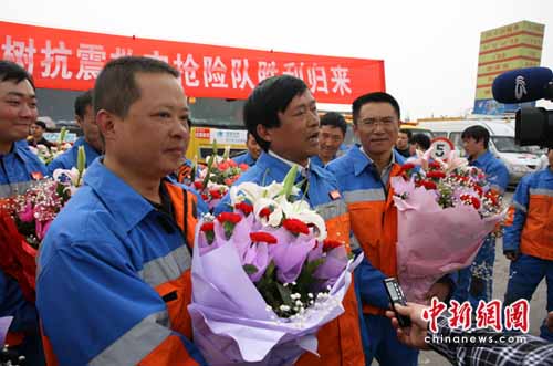 中新網(wǎng)成都4月26日電(記者劉忠俊)26日,國家電網(wǎng)四川省電力公司電力抗震救災(zāi)搶險隊安全從地震災(zāi)區(qū)玉樹返蓉。該支抗震救災(zāi)搶險隊為玉樹災(zāi)區(qū)送去了發(fā)電機(jī)、發(fā)電車以及電力搶險設(shè)備和救援物資,為玉樹災(zāi)區(qū)災(zāi)民安置區(qū)、學(xué)校復(fù)課提供了充足的電力保障。