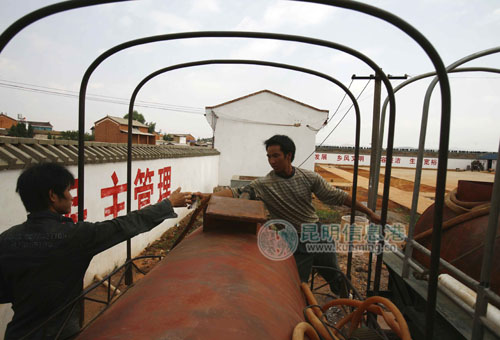 前來買水的人太多,水井承包人忙得不亦樂乎——開閘抽水、收錢。每一輛拖拉機抽滿水后,村民都會主動掏出1-2元錢遞給水井承包人。一村民說,凡是本村二組的村民抽水,每桶價格都是1元。除了本組村民外,每桶要2元,而拖拉機上的鐵皮桶只能裝一噸水。
