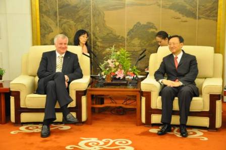 中新網(wǎng)4月27日電 據(jù)外交部網(wǎng)站消息,外交部長(zhǎng)楊潔篪今日在外交部會(huì)見德國(guó)巴伐利亞州州長(zhǎng)、基社盟主席澤霍夫。楊外長(zhǎng)積極評(píng)價(jià)中德關(guān)系以及中國(guó)與巴伐利亞州的友好合作,希望雙方相互尊重,進(jìn)一步增進(jìn)了解,努力擴(kuò)大互利合作。澤霍夫說,巴伐利亞州與中國(guó)的友誼源遠(yuǎn)流長(zhǎng),前州長(zhǎng)施特勞斯1975年訪華時(shí)毛澤東主席曾予接見。巴伐利亞州將繼承傳統(tǒng),繼續(xù)發(fā)展同中國(guó)的各領(lǐng)域合作。