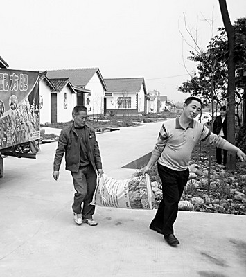 文縣玉壘鄉(xiāng)馬家溝行政村稻吉山曾坐落在高山頂,離山下10多公里,羊腸小道灑滿山民辛酸淚。地震中稻吉山村毀于一旦,在政府的幫助下,村民們在山下白水江畔川壩地帶建起漂亮的新家園。村民張克富利用國家補(bǔ)助兩萬元和貸款3萬元,加上自籌經(jīng)費(fèi),建起一座建筑面積140平方米磚混結(jié)構(gòu)的樓房。屋里擺設(shè)和城里人一樣闊綽,庭房里大沙發(fā)、茶幾、彩電、電視柜、冰箱一應(yīng)俱全。