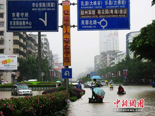中新網(wǎng)韶關(guān)5月14日電(記者李凌)5月14日上午,一周前才遭受50年一遇洪災(zāi)肆虐的廣東韶關(guān)又遭暴雨襲擊,多個地點(diǎn)出現(xiàn)內(nèi)澇現(xiàn)象,特別是市區(qū)韶關(guān)大道、韶州賓館北出口,工業(yè)西大轉(zhuǎn)盤等7處水浸嚴(yán)重,導(dǎo)致交通中斷。