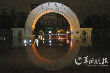 暨南大學昨晚再次遭受嚴重水浸,之前被惡搞的“暨大威尼斯分!憋L光再現(xiàn)。在行政樓的地下車庫前,保安們正在加緊壘高沙包,但依然無法阻擋水流入車庫。保安告訴記者,由于有了7日那場暴雨的教訓,因此昨晚早已提前把車庫里的車輛清空。
