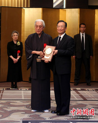 池田澄江沒想到自己這么快就又見到了溫總理,而且溫總理還對他們唱的那首歌一直念念不忘。5月30日晚,溫家寶總理剛剛抵達東京,未作休息旋即會見日本民間友好團體和友好人士代表,并向他們頒發(fā)了特別貢獻獎。