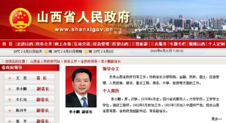 據(jù)山西省人民政府網(wǎng)站“省政府領(lǐng)導(dǎo)”欄目顯示,日前,李小鵬同志任山西省政府黨組副書記、常務(wù)副省長職務(wù)。