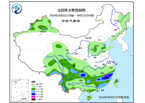 23日08時(shí)至24日08時(shí),西藏東部、青海東部和南部、川西高原等地有小到中雨(雪)或雨夾雪,其中,西藏東南部部分地區(qū)有大到暴雨;新疆北部、甘肅南部和祁連山區(qū)、陜西南部、黑龍江東部、山西、河北中南部、山東、河南東北部、江漢、江南大部、華南、西南地區(qū)有小到中雨或陣雨,其中,云南西北部、四川盆地西北部和南部、重慶南部、貴州大部、湖南大部、江西南部、福建中部、廣東東部、廣西北部等地有大到暴雨,局地有大暴雨;上述部分地區(qū)并伴有短時(shí)雷雨大風(fēng)等強(qiáng)對(duì)流天氣。新疆北部有4~6級(jí)風(fēng),山口地區(qū)的風(fēng)力可達(dá)8~9級(jí)。渤海、黃海大部海域?qū)⒂?~5級(jí)南到西南風(fēng);東海大部海域、臺(tái)灣海峽、南海北部將有4~6級(jí)西南風(fēng);北部灣將有5~7級(jí)西南風(fēng)。