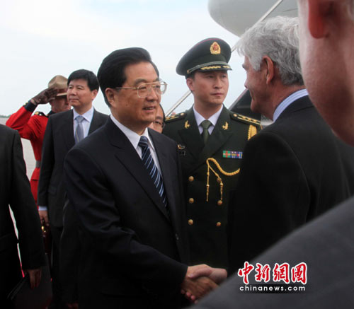 在機(jī)場(chǎng)發(fā)表的書面講話中,胡錦濤首先表示,很高興再次來(lái)到美麗富饒的“楓葉之國(guó)”加拿大進(jìn)行國(guó)事訪問(wèn)。