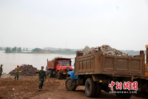 據(jù)武警水電部隊官兵介紹,決口還有好幾百米寬,而且決口處的水比較深,最深的地方6至7米,淺的也有3至4米,隨著封堵不斷推進,水位將抬升,水流也將繼續(xù)加急,所以封堵的困難將不斷增大。