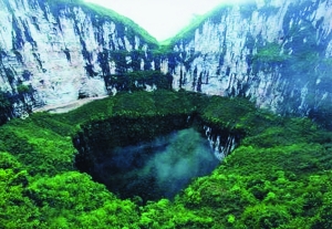 天坑 2001年之前,通常指重慶奉節(jié)縣的小寨天坑(上圖)。2005年后,這個中國人定義的術語獲得國際喀斯特學術界認可,以“tiankeng”通行國際。