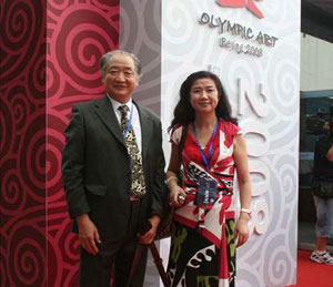 蔡布谷在2008年北京奧運(yùn)會(huì)奧林匹克美術(shù)大會(huì)留影。(圖片來(lái)源:大公報(bào))