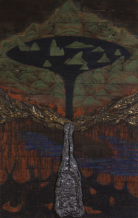 常民這個(gè)關(guān)鍵詞,在本展中,顯然與“主體”、“土地”、“民間”或“本土意識”是互通的,而常民與藝術(shù)的關(guān)聯(lián),至少體現(xiàn)在兩個(gè)面向上:一是以民間藝術(shù)模式做為藝術(shù)形式,二則是以常民生活的內(nèi)容,做為藝術(shù)創(chuàng)作的主題,多數(shù)參展藝術(shù)家應(yīng)可大致被納入這兩個(gè)區(qū)塊中,簡言之,本展相信,某一類好的作品,是因?yàn)樗晒Φ卦趶V義的常民文化中汲取了元素和力量。
