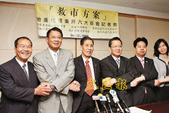 六大地產(chǎn)代理商會(香港專業(yè)地產(chǎn)顧問商會、地產(chǎn)代理聯(lián)會、香港地產(chǎn)代理專業(yè)協(xié)會、香港地產(chǎn)代理商總會、地產(chǎn)代理管理協(xié)會、新界地產(chǎn)代理商會),10日舉行記者會公布該會提出的六項“救市方案”。祥益地產(chǎn)總裁、香港專業(yè)地產(chǎn)顧問商會會長汪敦敬稱,近期銀行明顯收緊借貸限制,幾乎三個想買樓的買家,只有一個能夠成功取得銀行貸款,情況“很不正!。