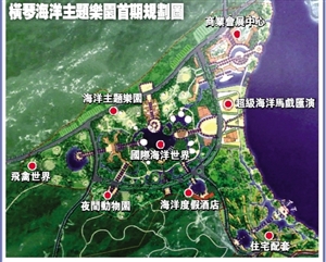 該項目總規(guī)劃的規(guī)模更大,面積達5平方公里,與氹仔的面積相若,幾乎涵蓋大橫琴島的東南端,并向南部海面延展,擬興建珠海國際會展中心、海洋主題酒店、國際水上樂園?偼顿Y達100億元,最終目標是建成全國第一、亞洲最大的海洋主題樂園,建設橫琴島生態(tài)旅游產(chǎn)業(yè)區(qū),打造成為粵港澳乃至東南亞地區(qū)市民的假日休閑度假勝地。
