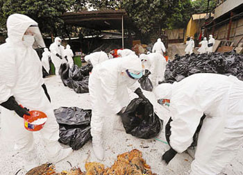漁護(hù)署、衛(wèi)生署與食環(huán)署9日下午舉行禽流感督導(dǎo)委員會(huì)會(huì)議,香港食物及衛(wèi)生局局長(zhǎng)周一岳會(huì)后會(huì)見(jiàn)記者時(shí)稱(chēng),因應(yīng)在香港農(nóng)場(chǎng)發(fā)現(xiàn)禽流感病毒,決定把香港禽流感的戒備應(yīng)變級(jí)別提升至嚴(yán)重級(jí)別,并把肇事雞場(chǎng)列為疫點(diǎn),雞場(chǎng)方圓3公里范圍內(nèi)列為疫區(qū),須銷(xiāo)毀疫區(qū)內(nèi)所有雞只,涉及2個(gè)雞場(chǎng)共8萬(wàn)只活雞。