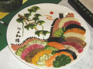 以色命名:金玉羹、玉露團(tuán)、琥珀肉。以時令命名:冬凌粥、秋葉餅。以烹調(diào)技法命名:滑熘里脊、粉蒸肉、干炸帶魚。以地名命名:北京烤鴨、南京板鴨、涪陵榨菜。以人物命名:東坡肉、文思豆腐、宮爆雞丁。以典故命名:柳浪聞鶯、掌上明珠、陽關(guān)三疊。以比喻、寄意、抒懷命名:通神餅、龍鳳腿、龍眼包子、麒麟魚、鴛鴦魚片、螞蟻上樹。以數(shù)字命名:一窩絲、二色膾、三不粘、四美羹、五福餅、六一菜、七返糕、八寶飯、九絲湯、十遠(yuǎn)羹、酒醉十三蠔、二十四氣餛飩、五彩牛百葉、八寶三味梨、百鳥歸鳳、千層糕、萬年紫鮑。
