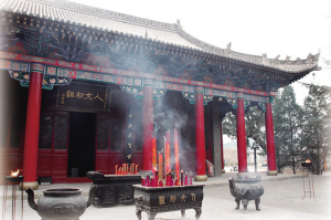 在全國(guó)許多地方,都有據(jù)說(shuō)與黃帝有關(guān)的遺跡,黃皇陵也有多處,但今陜西省陵縣的黃帝陵和黃帝廟已逐漸成為人們拜祭黃帝的中心。《史記》上說(shuō)"黃帝崩,葬橋山。"黃帝陵掩映在參天古柏之中,肅穆幽深。"橋山龍馭"四字碑立于陵前。這里還有一個(gè)故事,《史記·封禪書(shū)》上說(shuō),黃帝從首山采了銅,在荊山湖邊鑄了一口大鼎,這時(shí)有天龍下界,垂下胡須迎請(qǐng)黃帝上天。黃帝跨上龍背后,許多大臣和宮女也爬了上去,沒(méi)有爬上去的便死抓住龍須,結(jié)果龍須被拔掉了,而且還把黃帝的一只弓也晃落下來(lái)。這樣,此處被稱作鼎湖,上了天的黃帝被叫作鼎湖龍,落下的弓叫烏號(hào)。有詩(shī)云"當(dāng)年龍髯攀無(wú)計(jì),此日橋山景更清"說(shuō)的就是這回事。
