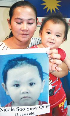 事主5日帶著只有9個(gè)月大的兒子艾比,向馬華公共服務(wù)及投訴部主任拿督張?zhí)熨n求助,希望透過(guò)媒體和公眾的幫助尋找愛(ài)女。