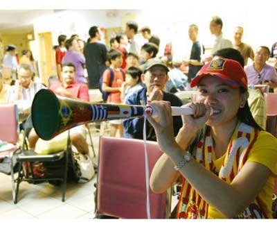 特別買了阿根廷隊(duì)球衣的關(guān)嘉怡,在阿根廷被德國(guó)淘汰后轉(zhuǎn)向支持西班牙,她吹著刺耳的嗚嗚祖啦,在冷氣室內(nèi)戴著球帽和圍巾,每逢荷蘭隊(duì)進(jìn)攻不果就從椅子上興奮地跳起來(lái)手舞足蹈。在終場(chǎng)哨響的時(shí)刻,她再度躍起狂歡。(曹健)