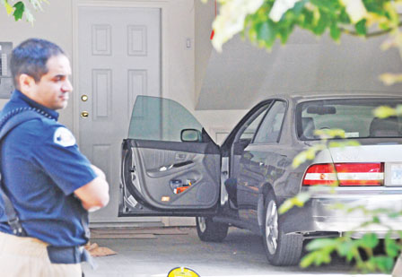 騎警在確定車房安全后,走入車內(nèi)取出一個紅色手袋,將手袋內(nèi)個人物品傾倒警車車頭蓋上,逐樣物品記錄下來,之后,騎警又打開汽車車尾箱,繼續(xù)搜集資料。多名騎警其后又挨家逐戶向鄰居查詢有關(guān)資料。
