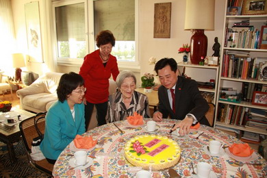 韓女士雖已年逾九十高齡,但精神矍鑠、談吐流利,依然時(shí)刻關(guān)注著中國的進(jìn)步和發(fā)展。在交談中,她衷心感謝吳大使夫婦專程趕來洛桑為其慶生,表示,使館的惦記和關(guān)懷讓她感到無比溫馨。她祝祖國繁榮昌盛,人民幸福安康。