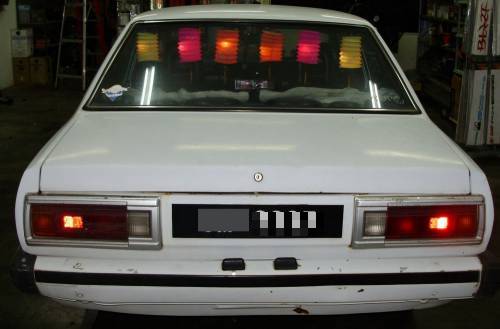 葉運(yùn)生(57歲)是于14日下午4時(shí),到百貨公司買了6個(gè)紙燈籠后,把已有31年車齡的達(dá)善轎車駕到汽車裝飾中心,把燈籠掛在汽車后座,并以燈泡取代蠟燭,再把電線連接到電箱,點(diǎn)亮燈籠。