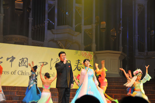 當(dāng)?shù)貢r(shí)間2月20日,21日由國(guó)務(wù)院僑辦、中國(guó)海外交流協(xié)會(huì)組派的“文化中國(guó)•四海同春”赴大洋洲藝術(shù)團(tuán)在著名的悉尼市政廳劇院連續(xù)舉行了兩場(chǎng)慰?jī)S演出。首場(chǎng)演出是2月17日,中國(guó)農(nóng)歷新年的大年初四,在澳大利亞墨爾本達(dá)拉斯布魯克斯音樂(lè)廳。雷鳴般的掌聲回蕩在劇院內(nèi),經(jīng)久不息。動(dòng)聽的歌聲、悠揚(yáng)的樂(lè)曲,曼妙的舞姿令觀眾如醉如癡。三場(chǎng)演出都獲得了巨大成功,引起轟動(dòng)。當(dāng)?shù)刂髁魃鐣?huì)紛紛發(fā)來(lái)賀信。