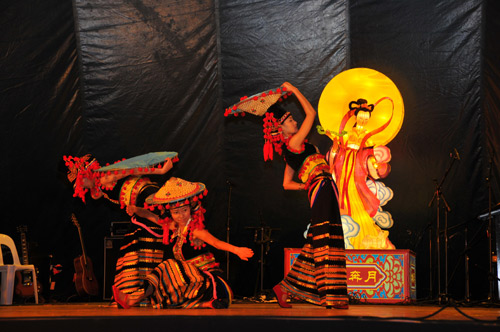藏族年輕歌手格桑頓珠演唱的《太陽從東方升起》、《敬酒歌》、《卓瑪》,高亢嘹亮,把觀眾帶向那藍天碧水、白云悠悠的青藏高原。民族舞蹈《高原女人》、《火的節(jié)日》,讓觀眾領(lǐng)略了中國少數(shù)民族德昂族的民族風韻和彝族同胞的熱情火辣。廣場內(nèi)掌聲陣陣,閃光燈頻閃。