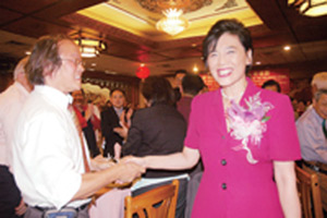 中新網9月3日電 據(jù)美國《星島日報》報道,美國南加州僑界為慶祝趙美心成為有史以來第一位當選聯(lián)邦眾議員的華裔女性,1日特別在洛杉磯華埠舉行盛大慶祝會,近300名老僑新僑一起祝賀這位華人之光。