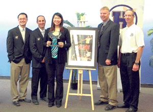 在坎伯學院20日專門為葉惠恩舉行的頒獎儀式上,葉惠恩從安省學院運動協(xié)會(OCAA)行政總監(jiān)Blair Webster的手中,接過協(xié)會每年僅頒發(fā)給一名女運動員和一名男運動員的年度運動員獎項。據(jù)坎伯學院運動體育總監(jiān)Doug Fox介紹,本獎項是很少由新生獲得,葉惠恩也是該校首個獲此獎項的新生。