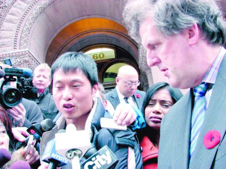 中新網(wǎng)11月5日電 據(jù)加拿大《明報(bào)》報(bào)道,多倫多中區(qū)華埠金牛城超市老板陳旺與其兩名親戚捉小偷被控案的檢控官赫伯恩(Colleen Hepburn) ,3日撤銷3人的綁架和暗藏武器兩項(xiàng)控罪,但仍保留強(qiáng)行禁錮和襲擊他人兩項(xiàng)罪名,該案將要等到明年6月21至23日間進(jìn)行正式審訊。