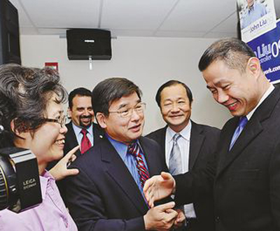 中新網(wǎng)11月6日電 據(jù)美國《世界日報》報道,忙于謝票的紐約第20選區(qū)現(xiàn)任市議員、候任市主計(jì)長華裔劉醇逸和候任華裔市議員顧雅明4日早上在華策會福壽老人中心喜相逢,兩人熱情擁抱,互相祝賀創(chuàng)造歷史,并表示兩人將馬上開始著手交接工作,使法拉盛民眾的服務(wù)不因?yàn)槭凶h員的更替而中斷。