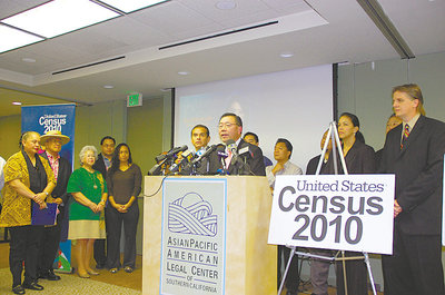 中新網(wǎng)1月27日電 據(jù)美國《世界日?qǐng)?bào)》報(bào)道,“花十分鐘,回答十個(gè)問題,讓屬于我們的利益回到我們手中”。洛杉磯地區(qū)亞太裔小區(qū)25日聯(lián)合發(fā)起2010全國人口普查亞太裔總動(dòng)員,洛杉磯市長維拉萊構(gòu)沙和亞太法律中心主任郭志明站臺(tái),呼吁亞裔民眾踴躍參與,讓每一位居民都算入。