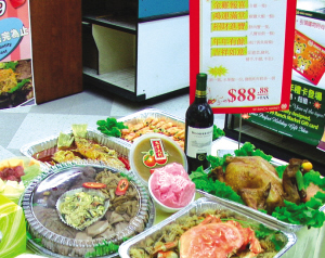 經(jīng)濟不好,團年飯改在家里吃吧!大華超市公關經(jīng)理曹其崢表示,他們根據(jù)市場的判斷,認為許多華裔人士會追求經(jīng)濟實惠的家庭套餐,如果可以讓他們在家里就可以座享餐館的美食,將會受歡迎。因此,他們推出了力求薄利多銷,“百元有找”的新春套餐。新春套餐以“金雞報喜”、“鴻運滿堂”、“招財進寶”、“年年有余”等吉祥話命名,包括全雞、大蝦、肉蟹、黃金魚及魯菜拼盤,另外贈送紅酒、水果盤、發(fā)糕及年糕,全部套餐只要88.88元。